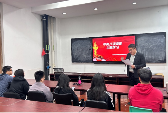 领导班子依托中心组理论学习、交流学习心得等形式,结合学院实际开展专题研讨,引导党员干部深入学习习近平总书记关于加强党的作风建设的重要论述以及中央八项规定及其实施细则精神,以锤炼坚强党性、提升思想觉悟。